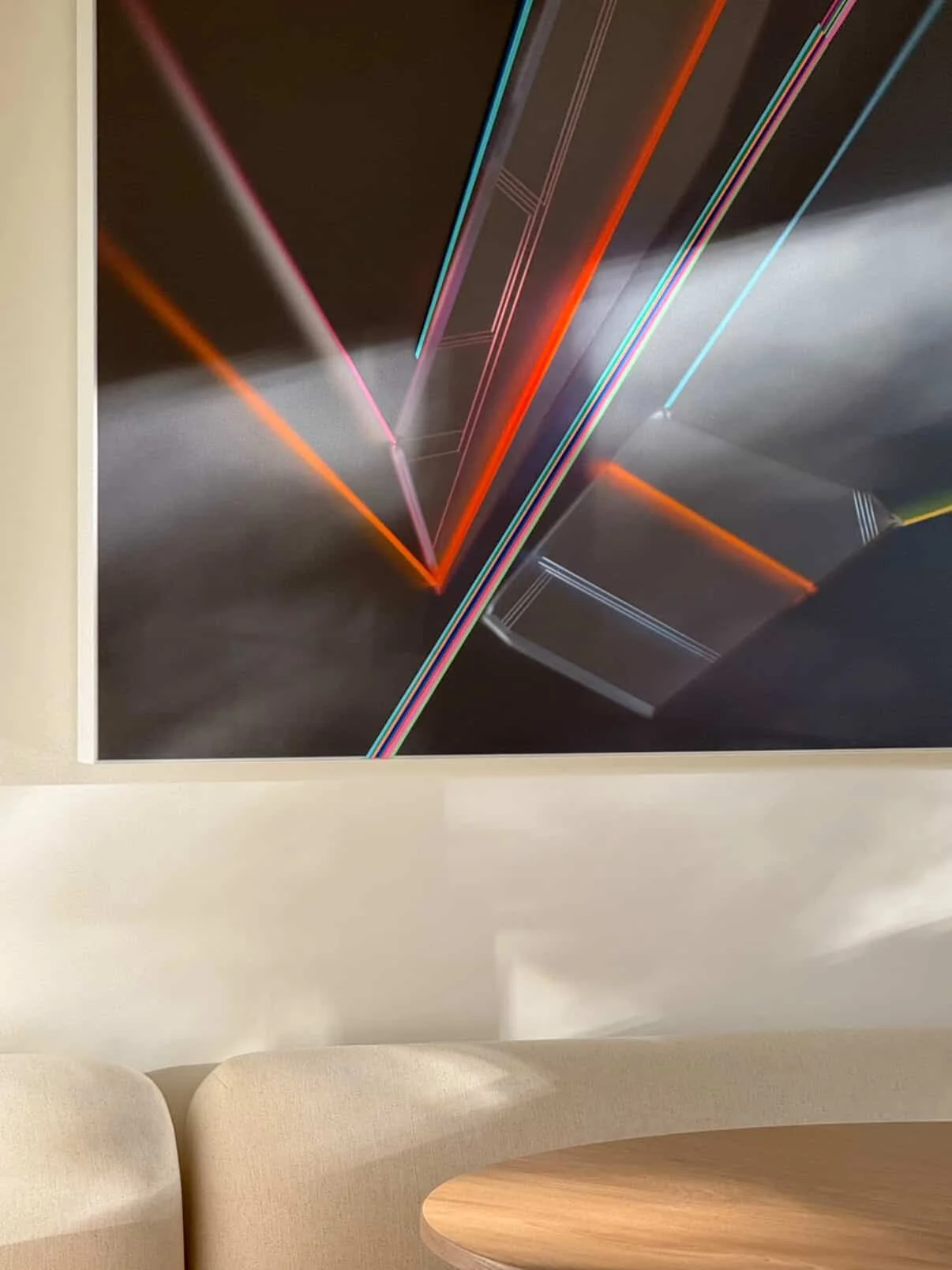 Commissioned by clients in Toronto, this 55” x 55” minimalist, monochromatic artwork is executed in acrylic and plexiglass.